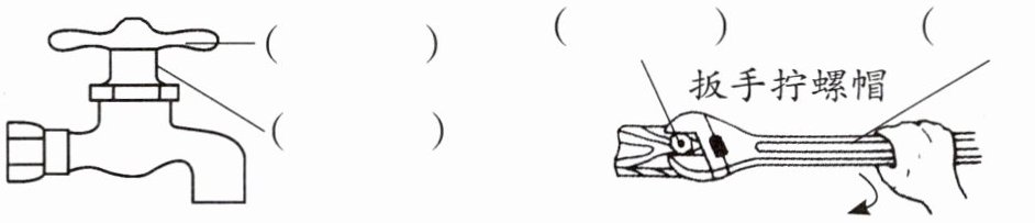 车轮是一种 ,由半径较大的 和半径较小的 组成。生活中常见的水龙头、扳手都可以看成是 的变形。在轮轴的轮上用力带动轴运动,能起到 的作用。请在图中标出“轮”和“轴”。