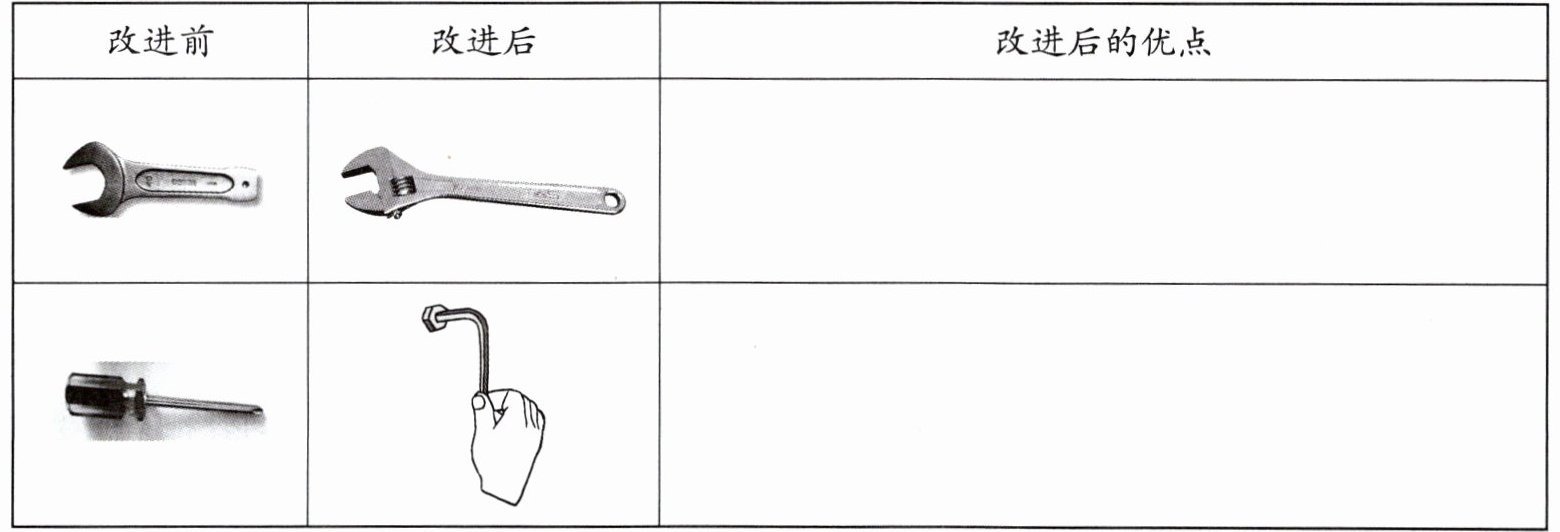 四、下面的表中,右图是对左图工具进行技术改进后的工具,请写出改进后的优点。