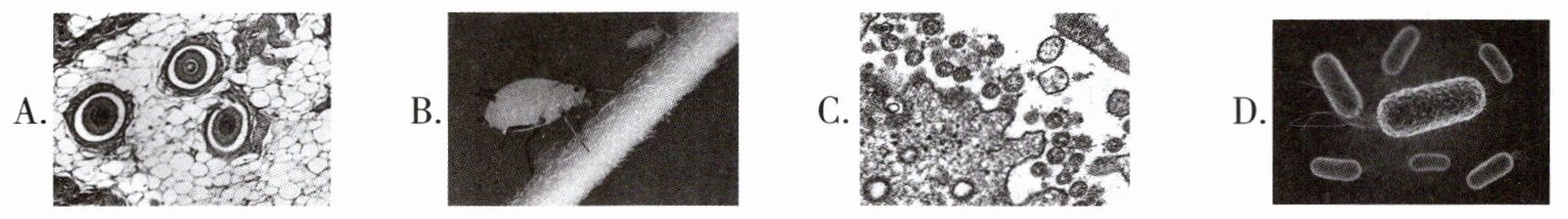 4. 下列图像中,能在简易显微镜下看到的是( )。