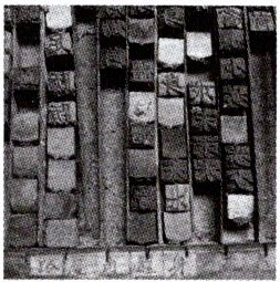 活字印刷术是北宋中期杭州人毕昇发明的。他发明的活字以胶泥为原料制成,是世界上最早的泥活字。活字印刷术的工序分为刻制单字、排版、印刷、拆版四个步骤。首先,把胶泥做成四方长柱体,一面刻上反体单字,再用火烧硬,使之成为陶质,一个字为一个印,存放在木格中。然后,取一个铁框,里面先敷上松脂、蜡和纸灰等粘固物,再把活字一个个排列进去,用火烘烤将粘固物熔化,冷却后字便固定在铁框内就可以印刷了。印完,再次熔化粘固物使泥活字脱落,按韵收藏以备再用。