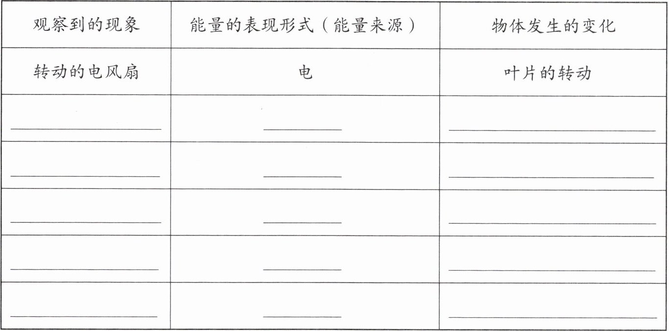 2.找一找我们身边有哪些能量形式,它们最终使物体发生了哪些变化。