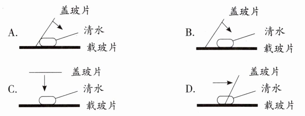 3. 下列4幅图中,哪个是盖盖玻片的正确操作?( )