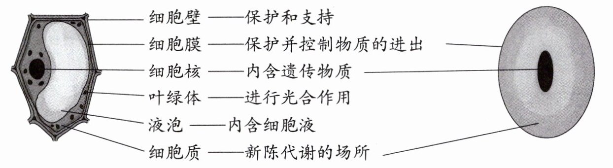 1.细胞膜 细胞核 细胞壁 叶绿体 2.叶绿体 细胞核 保护和支持 没有