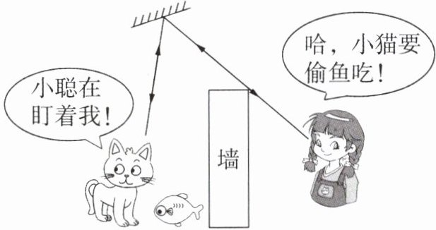 4. 下图是关于小聪和小猫的一幅漫画,图中两条光线的夹角是60°,则小聪观察小猫的光路的入射角是
