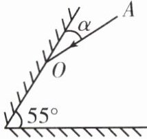 3. 下图是两个夹角为55°的平面镜,一束光AO射到其中一个平面镜上,要使光经另一个平面镜反射后按原路径从OA射出,则角α为
