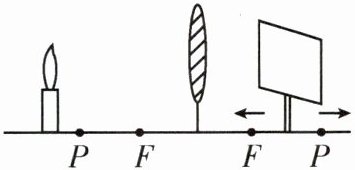 如图所示,$F$点为凸透镜的焦点,$P$点到凸透镜的距离为2倍焦距。把一支点燃的蜡烛放在如图所示的位置,在凸透镜的另一侧调节光屏的位置,可找到一个清晰的烛焰的像,这个像是(