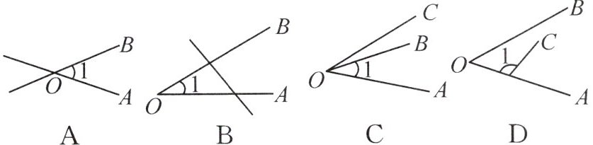 2. 下列图形中,能用$∠1$,$∠AOB$,$∠O$三种方法表示同一个角的图形是(