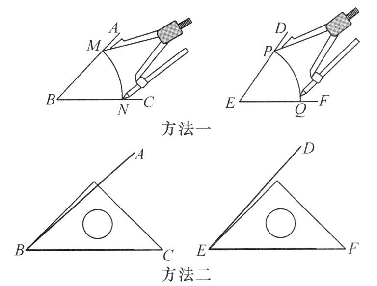 4. 如图,用两种方法比较$∠ABC和∠DEF$的大小,其中能得到$∠ABC < ∠DEF$的是(