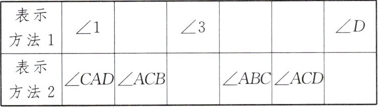 3. 根据图中信息填写下表,将表中的角用其他方法表示出来。