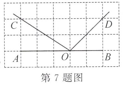 7. 在如图所示的小正方形组成的网格中,点$A$,$B$,$C$,$D$,$O$均在格点(网格线交点)上,那么$∠AOC$