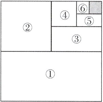 12. 北师大附属实验校本经典题 如图,将一张边长为$1的正方形纸片分割成7$个部分,部分①的面积是边长为$1$的正方形纸片面积的一半,部分②的面积是部分①面积的一半,部分③的面积是部分②面积的一半,依次类推.