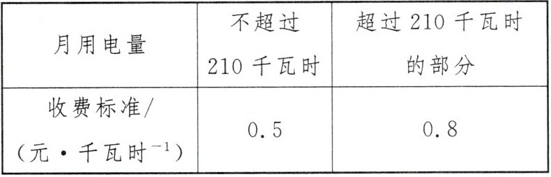 |月用电量|不超过 210 千瓦时|超过 210 千瓦时的部分|