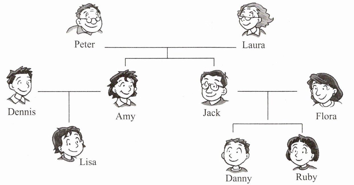 1) father 2) grandmother 3) brother 4) daughter 5) son 6) uncle