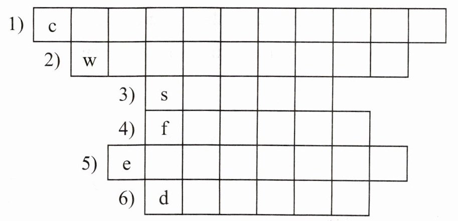 2. 根据提示填空完成句子,然后在下面的字谜中写出相应的单词。