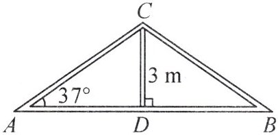 11. (2023·广西)如图,焊接一个钢架,包括底角为 $37^{\circ}$ 的等腰三角形外框和 $3m$ 高的支柱,则共需钢材约