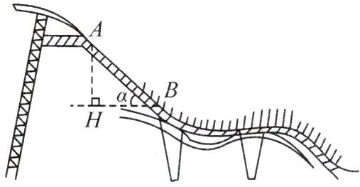 10. 新考向 真实情境 (2024·广西大学附中月考)如图所示的是冬奥会首钢滑雪大跳台赛道的剖面图,剖面图的一部分可抽象为线段 $AB$. 已知斜坡 $AB$ 的坡比接近 $3:4$,坡长 $AB$ 为 $n$ 米,则斜坡 $AB$ 的铅垂高度 $AH$ 约为(
