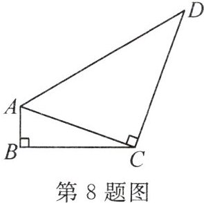 8. 如图所示,在四边形 $ABCD$ 中,$\angle B = 90^{\circ}$,$AB = 2$,$CD = 8$,连接 $AC$,$AC\perp CD$. 若 $\cos\angle CAB = \frac{1}{3}$,则 $AD$ 的长是