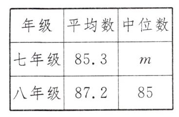 (2)小航是七年级的学生.理由如下:因为82<83<85,他的成绩超过了被抽取的七年级学生成绩的中位数,且没超过八年级学生成绩的中位数,所以小航是七年级的学生.