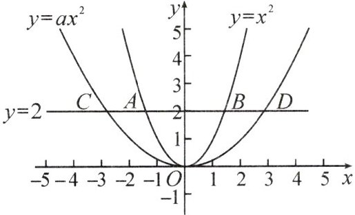 11. 如图,在平面直角坐标系中,直线 $ y = 2 $ 与抛物线 $ y = x^2 $ 和 $ y = ax^2 $ 分别交于 $ A $,$ B $ 和 $ C $,$ D $ 四个点. 若 $ CD = 2AB $,则 $ a $ 的值是