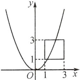 14. 如图,正方形四个顶点的坐标依次为 $ (1, 1) $,$ (3, 1) $,$ (3, 3) $,$ (1, 3) $. 若二次函数 $ y = ax^2 $ 的图象与正方形有公共点,则实数 $ a $ 的取值范围是(