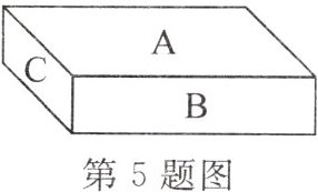5. 新考向 跨学科 如图,一块砖的A,B,C三个面的面积比为4:2:1,A,B,C面分别向下放在地上,地面所受压强为p₁,p₂,p₃.压强的计算公式为p=$\frac{F}{S}$,其中p是压强,F是压力,S是受力面积,则p₁,p₂,p₃的大小关系是