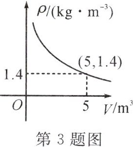 3. 新考向 跨学科 在一个可以改变容积的密闭容器内,装有一定质量m的某种气体.当改变容积V时,气体的密度ρ也随之变化,ρ与V在一定范围内满足ρ=$\frac{m}{V}$,它的图象如图所示,则气体的质量m为(
