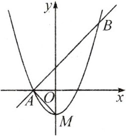 11. 如图,抛物线的顶点 $ M $ 在 $ y $ 轴上,抛物线与直线 $ y = x + 1 $ 相交于 $ A $,$ B $ 两点,且点 $ A $ 在 $ x $ 轴上,点 $ B $ 的横坐标为 $ 2 $,那么抛物线的函数关系式为
