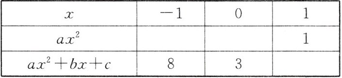 9. 若 $ y = ax^{2} + bx + c $,则由表格中信息可知 $ y $ 与 $ x $ 之间的函数表达式是 (