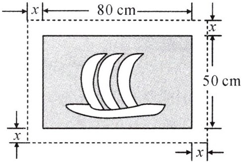 6. 如图,在一幅长$80cm$、宽$50cm$的矩形风景画的四周镶一条金色纸边,制成一幅矩形挂图,如果要使整个挂图的面积是$ycm^{2}$,设金色纸边的宽为$xcm$,要求纸边的宽度不得少于$1cm$,同时不得超过$2cm$。
