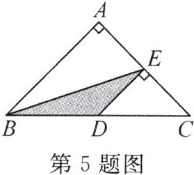 5. 如图,在等腰直角三角形$ABC$中,$\angle A = 90^{\circ}$,$AC = 4cm$,$D$,$E$分别是边$BC$,$AC$上的点,且$DE// AB$,则$S_{\triangle BDE}$的最大值是