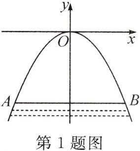 1. 某涵洞的截面是抛物线形状,在如图所示的平面直角坐标系中,涵洞对应的抛物线的表达式为$y = -\frac{1}{4}x^{2}$。当涵洞水面宽$AB$为16m时,涵洞顶点$O$至水面的距离为(