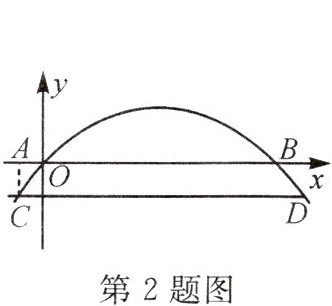 2. 如图所示的是拱形大桥的示意图,桥拱与桥面的交点为$O$,$B$,以点$O$为原点,水平直线$OB$为$x$轴,建立平面直角坐标系,桥的拱形可以近似看成抛物线$y = -\frac{1}{400}(x - 80)^{2}+16$,桥拱与桥墩$AC$的交点$C$恰好在水面,有$AC\perp x$轴。若$OA = 10$米,则桥面离水面的高度$AC$为