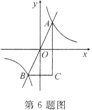 6. 如图,正比例函数 $ y = kx $ 与函数 $ y = \frac{6}{x} $ 的图象交于 $ A,B $ 两点, $ BC // x $ 轴, $ AC // y $ 轴,则 $ S_{\triangle ABC} = $