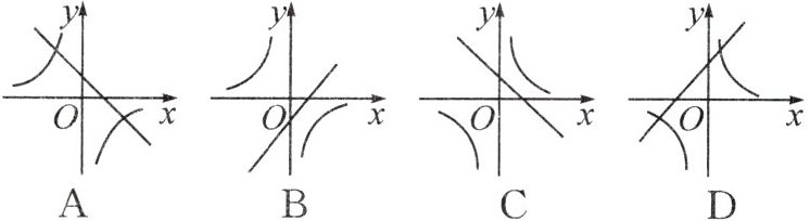 9. (2024·玉林北流市模拟)在同一平面直角坐标系中,一次函数 $ y = kx - k $ 与反比例函数 $ y = \frac{k}{x}(k \neq 0) $ 的图象大致是 (