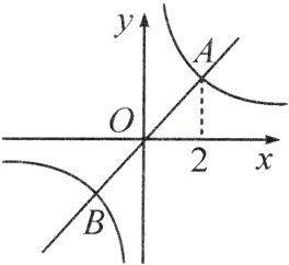 8. (2023·贵港桂平市期中)如图,正比例函数 $ y = ax $ 的图象与反比例函数 $ y = \frac{k}{x} $ 的图象相交于 $ A,B $ 两点,其中点 $ A $ 的横坐标为 2,则不等式 $ ax < \frac{k}{x} $ 的解集为 (