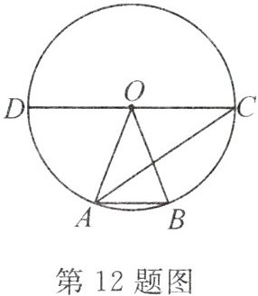 12. (教材九下P52练习T3变式)如图,在$\odot O$中,$A$,$B$是圆上的两点,已知$\angle AOB = 40^{\circ}$,直径$CD // AB$,连接$AC$,则$\angle BAC =$