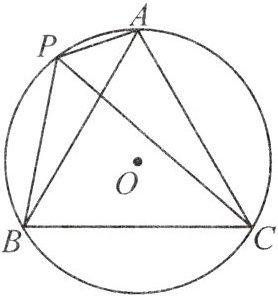 ∵∠BAC与∠CPB都是$\overset{\frown}{BC}$所对的圆周角,∠ABC与∠APC都是$\overset{\frown}{AC}$所对的圆周角,