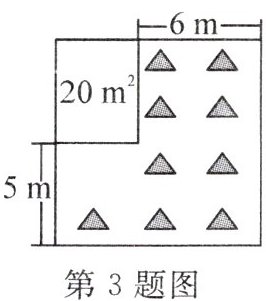 3. 如图,将一块正方形空地划出部分区域进行绿化,原正方形空地一边减少了 $ 5 \, m $,另一边减少了 $ 6 \, m $,剩余一块面积为 $ 20 \, m^2 $ 的矩形空地,则原正方形空地的边长是