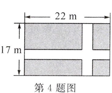 4. (教材 P52 练习 T1 变式)如图,在一块长为 $ 22 \, m $,宽为 $ 17 \, m $ 的矩形地面上,要修建同样宽的两条互相垂直的道路(两条道路各与矩形的一条边平行),剩余部分种上草坪,使草坪面积为 $ 300 \, m^2 $. 若设道路的宽为 $ x \, m $,则根据题意可列方程为(