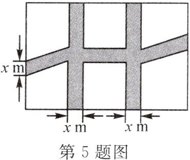 5. (本课时 T4 变式)如图,某单位准备在院内一块长 $ 30 \, m $、宽 $ 20 \, m $ 的矩形花园中修两条纵向平行和一条横向弯折的小道,剩余的部分种植花草. 如图,要使种植花草的面积为 $ 532 \, m^2 $,则小道进出口的宽度为