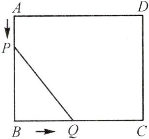如图,在矩形 $ ABCD $ 中,$ AB = 5 \, cm $,$ BC = 6 \, cm $,点 $ P $ 从点 $ A $ 开始沿边 $ AB $ 向终点 $ B $ 以 $ 1 \, cm/s $ 的速度移动,与此同时,点 $ Q $ 从点 $ B $ 开始沿边 $ BC $ 向终点 $ C $ 以 $ 2 \, cm/s $ 的速度移动,如果点 $ P $,$ Q $ 分别从点 $ A $,$ B $ 同时出发,当点 $ Q $ 运动到点 $ C $ 时,两点停止运动. 设运动时间为 $ t \, s $.