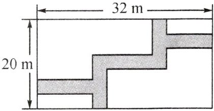 9. 如图,在宽为 $ 20 \, m $,长为 $ 32 \, m $ 的矩形地面上修筑同样宽的道路(图中阴影部分),余下的部分种上草坪,要使草坪的面积为 $ 540 \, m^2 $,求道路的宽. 如果设道路的宽为 $ x \, m $,根据题意,所列方程正确的是(