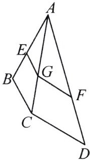 8. 如图,已知$EG// BC$,$GF// CD$,$AE = 3$,$EB = 2$,$AF = 6$,求$AD$的长。