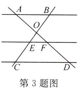 3. (2023·北京)如图,直线$AD$,$BC$交于点$O$,$AB// EF// CD$。若$AO = 2$,$OF = 1$,$FD = 2$,则$\frac{BE}{EC}$的值为