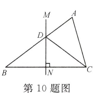 10. 如图,在△ABC 中,BC 的垂直平分线 MN 交 AB 于点 D,CD 平分∠ACB.若 AD=2,BD=3,则 AC 的长是