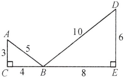 解:$\triangle ABC\backsim \triangle DBE$.理由:$\because \frac {AC}{DE}=\frac {3}{6}=\frac {1}{2},\frac {BC}{BE}=\frac {4}{8}=\frac {1}{2},\frac {AB}{DB}=\frac {5}{10}$$=\frac {1}{2},\therefore \frac {AC}{DE}=\frac {BC}{BE}=\frac {AB}{DB}.\therefore \triangle ABC\backsim \triangle DBE.$
