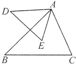 4. 如图,若$\frac{AB}{AD}=\frac{AC}{AE}=\frac{BC}{DE}$,$\angle BAE = 30^{\circ}$,$\angle BAC = 70^{\circ}$,则$\angle DAB=$