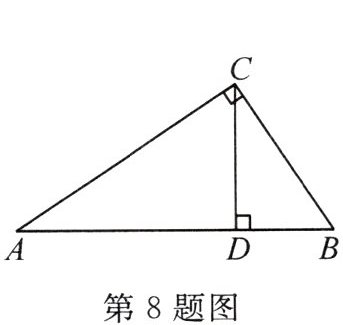 8. 如图,在$\triangle ABC$中,$∠ACB=90^{\circ }$,CD 是斜边 AB 上的高,$AD=9,BD=4$,那么$CD=$