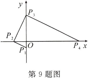 9. 如图,点$P_{1},P_{2},P_{3},P_{4}$均在坐标轴上,且$P_{1}P_{2}⊥P_{2}P_{3},P_{2}P_{3}⊥P_{3}P_{4}$. 若点$P_{1},P_{2}$的坐标分别为$(0,-1),(-2,0)$,则点$P_{4}$的坐标为