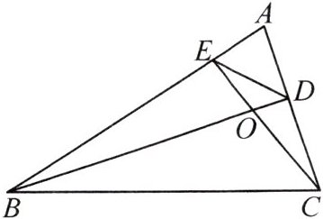 7. 如图,在$\triangle ABC$中,点 D,E 分别在边 AC,AB 上,BD,CE 相交于点 O,且$\frac {EO}{BO}=\frac {DO}{CO}$. 求证:$\triangle ADE\backsim \triangle ABC$.